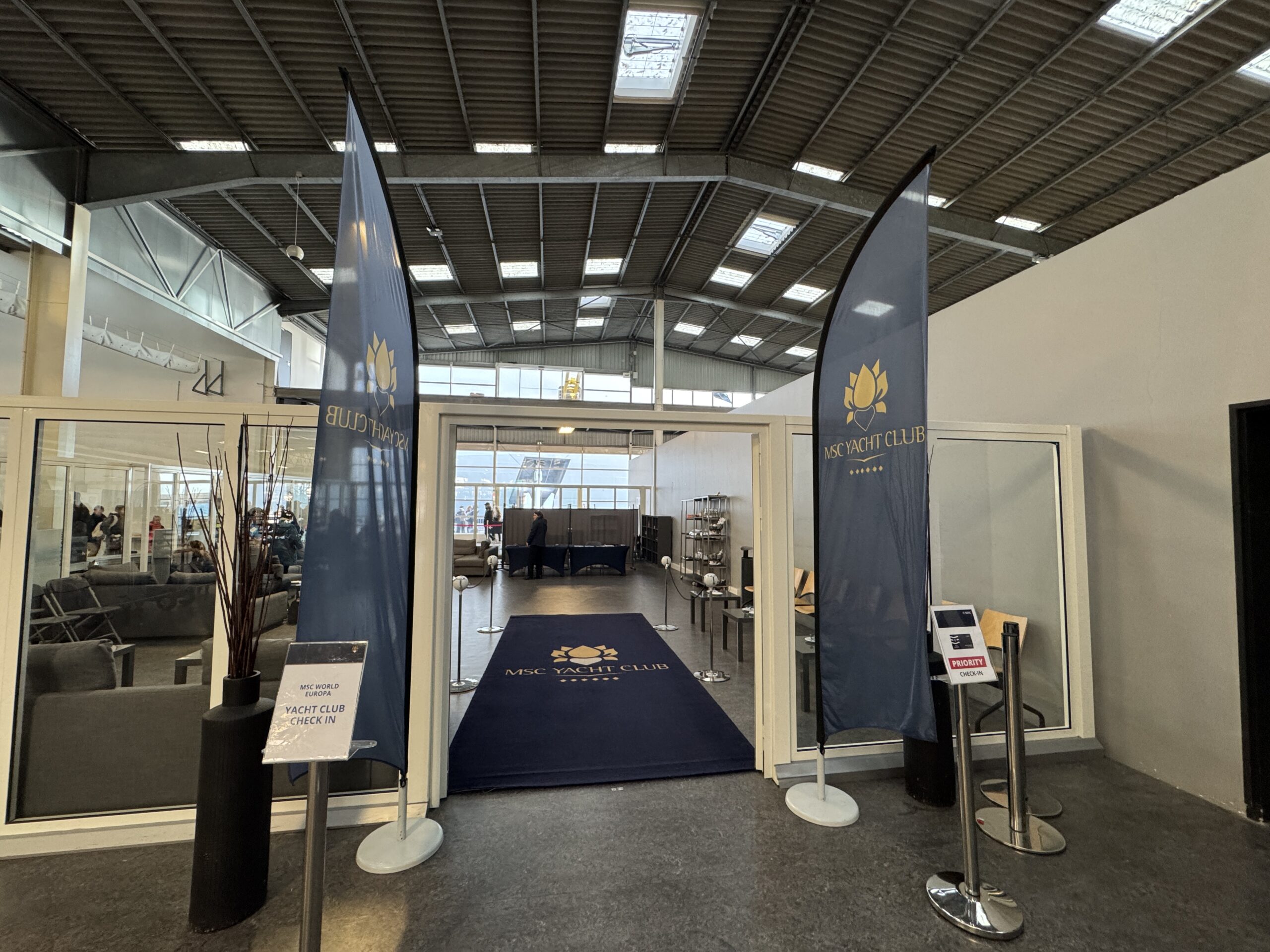 À l’entrée du Terminal, un employé avec un panneau MSC Yacht Club vous attendra pour vous faire passer les portiques de sécurité en priorité et vous faire monter à bord du navire par une entrée dédiée.