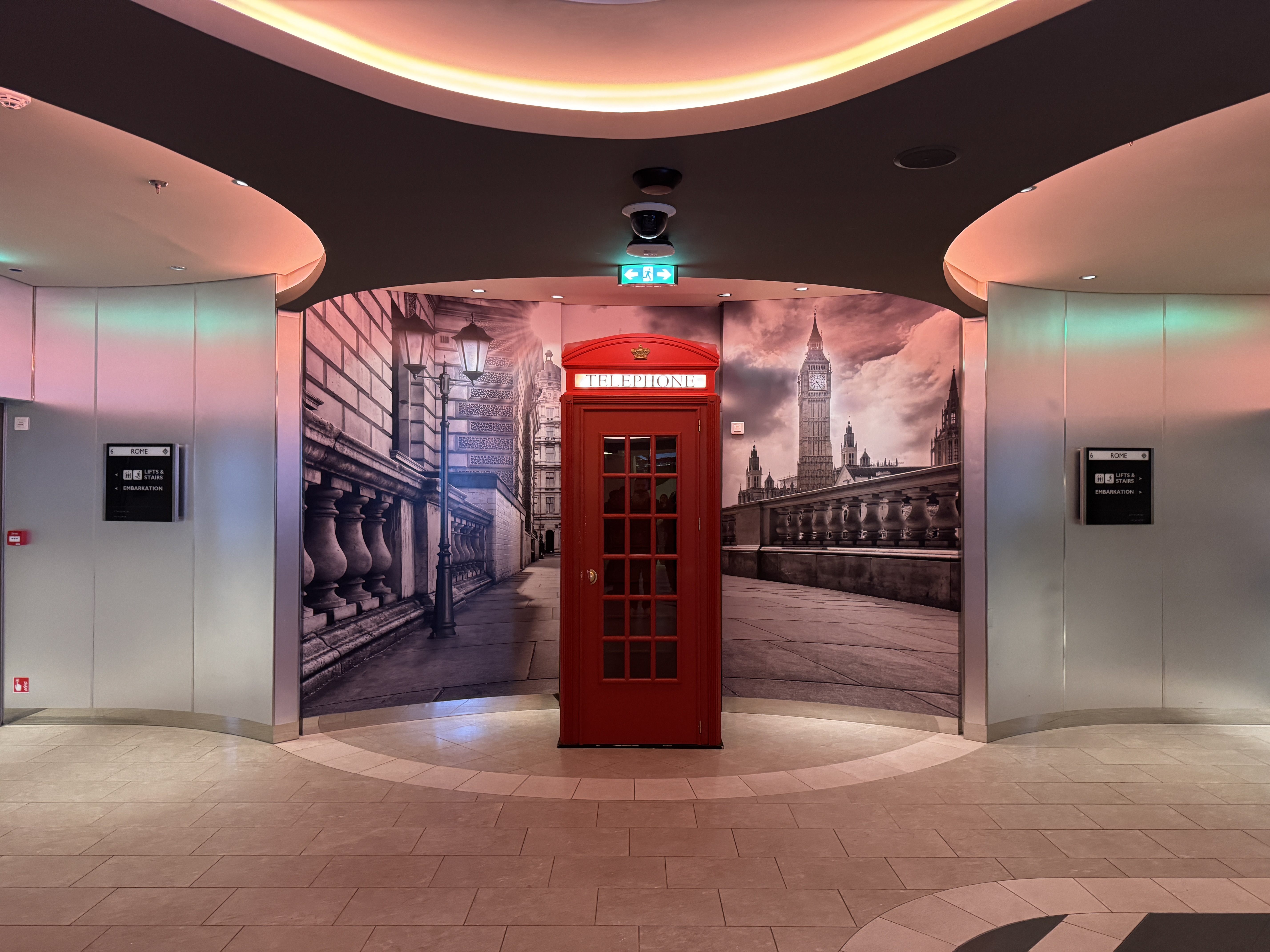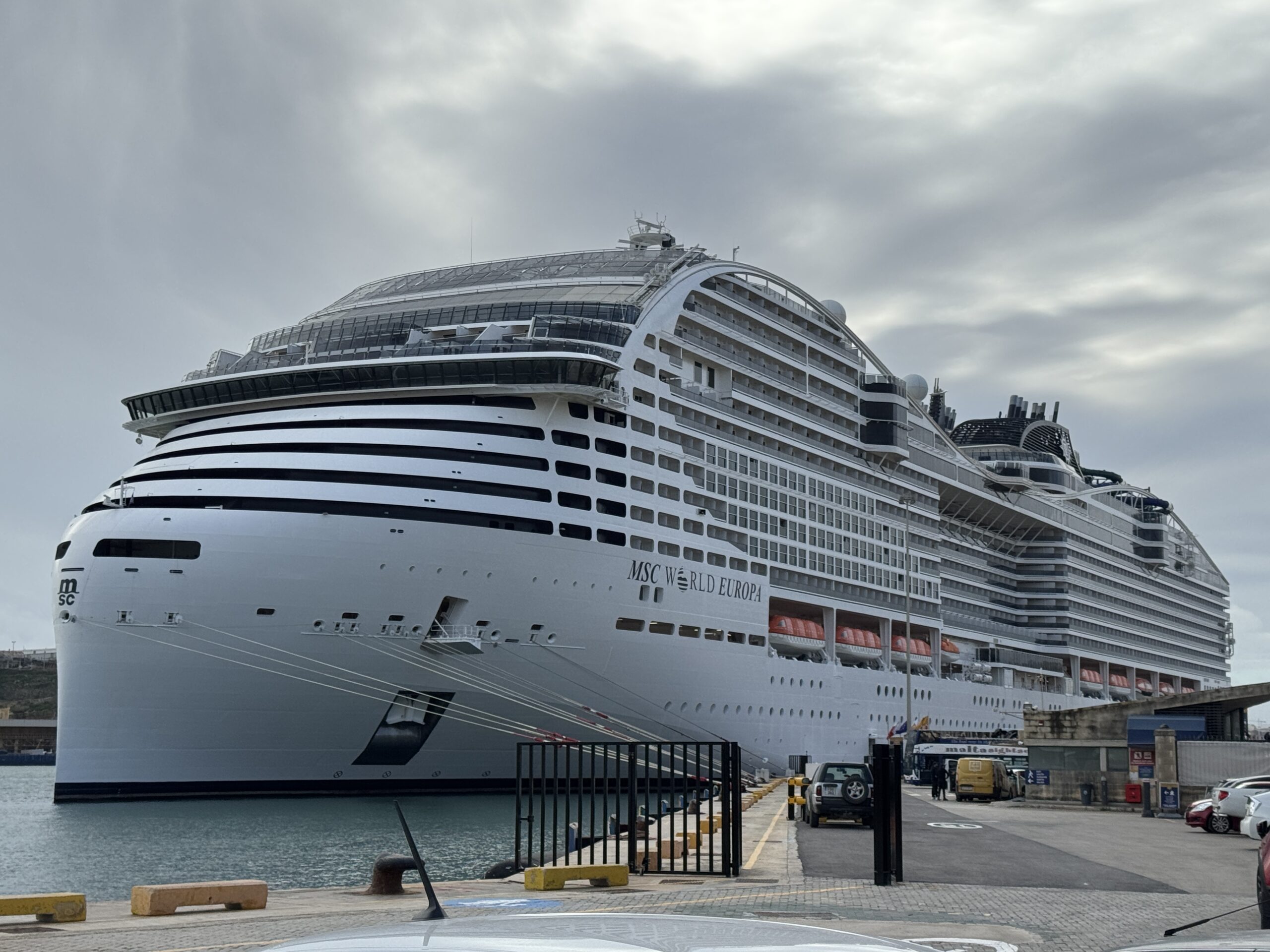 Au bout de quelques minutes, un majordome vient nous chercher pour nous faire monter sur le MSC World Europa. Il nous fait passer les portiques de sécurité et le contrôle des bagages à main en priorité. Nous passons devant des centaines de vacanciers, économisant ainsi plus d’une trentaine de minutes d’attente.