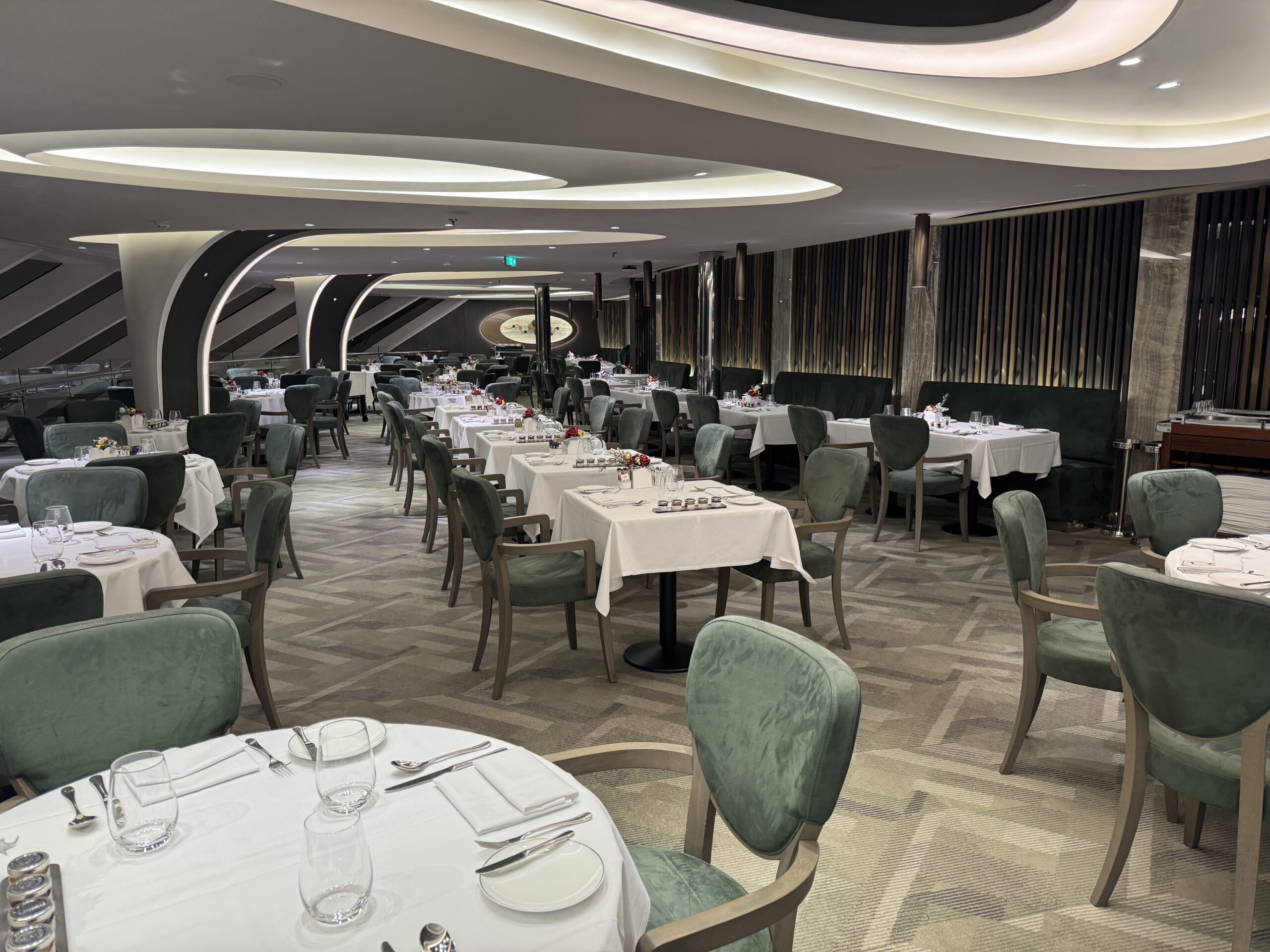 Contrairement aux autres restaurants du bateau, ici nous sommes sur un établissement de taille moyenne. L’ambiance y est calme. Une attention constante est portée à la qualité du service.