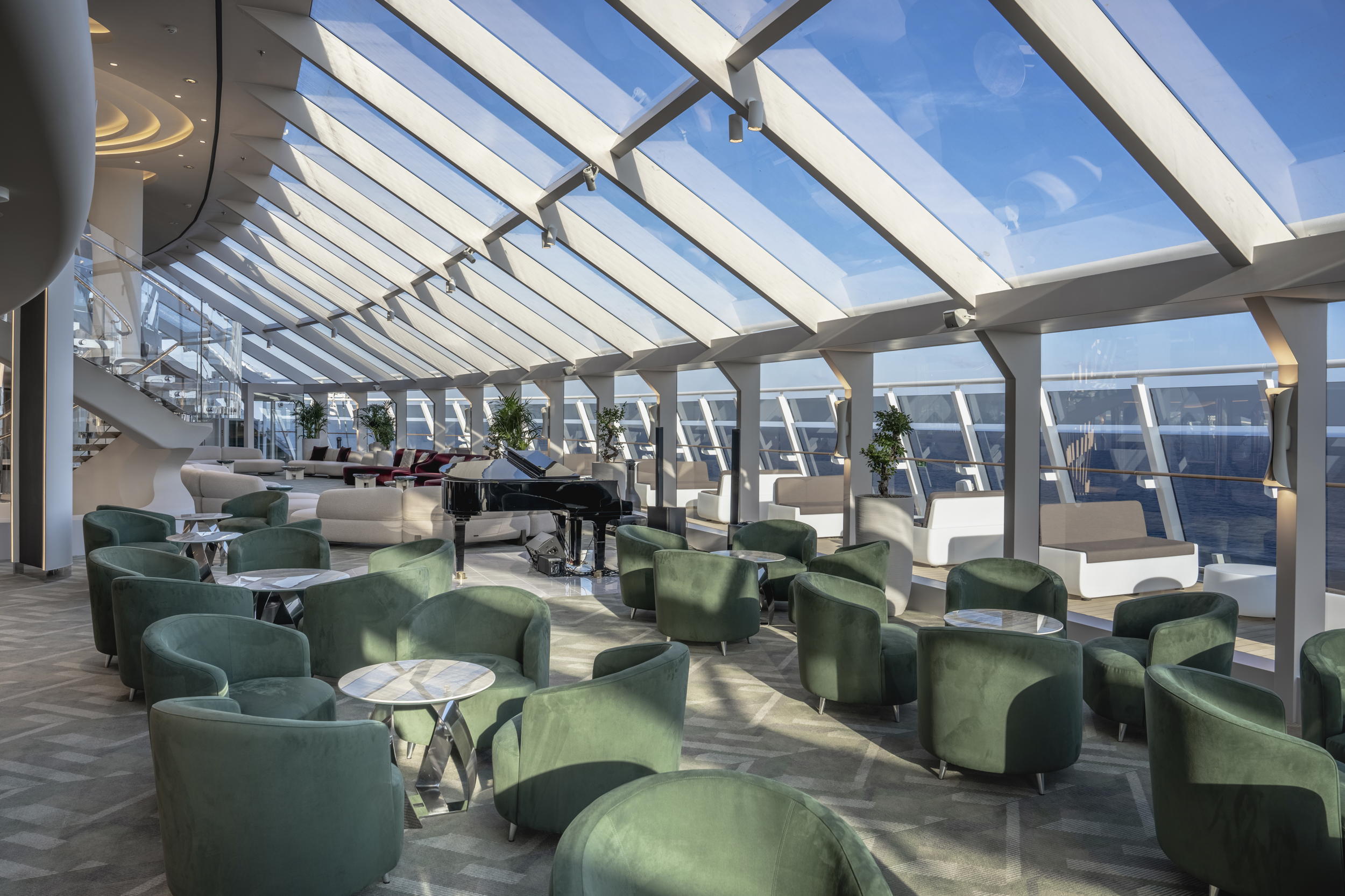 Ce bateau dans le bateau est constitué de plusieurs étages, entièrement déconnectés du reste du paquebot. Il dispose de ses propres escaliers et de son propre ascenseur. Ainsi, vous pouvez passer l’intégralité de vos vacances sans quitter ce havre de tranquillité.
