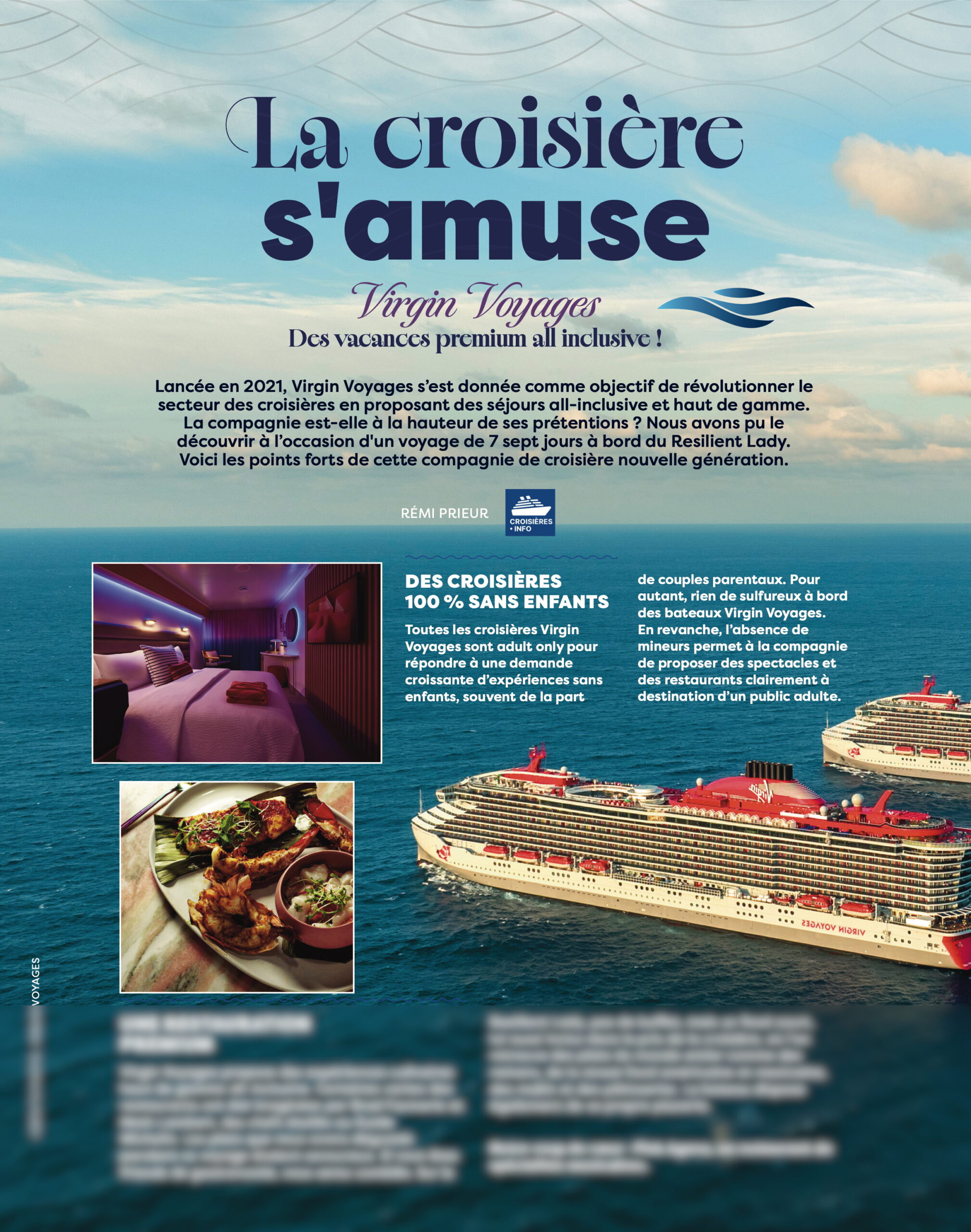 Dans le numéro 15 de magazine Parcs et Loisirs Magazine, la rédaction de Croisières•info a réalisé un dossier sur Resilient Lady de Virgin Voyages.